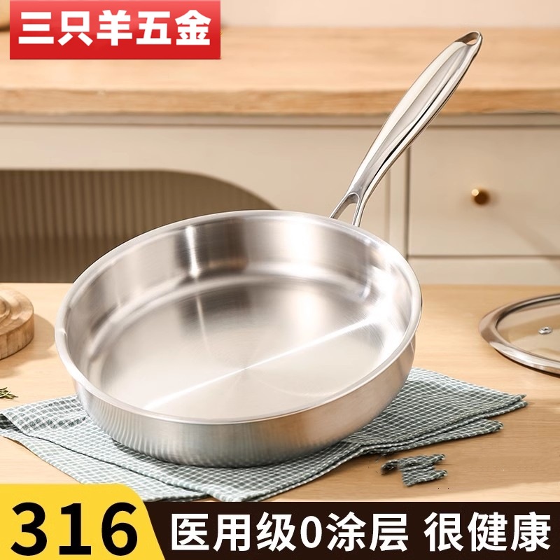 コーティングなし316ステンレスフライパン家庭用非粘着鍋食品級厚手電磁ストーブ専用ステーキフライパン