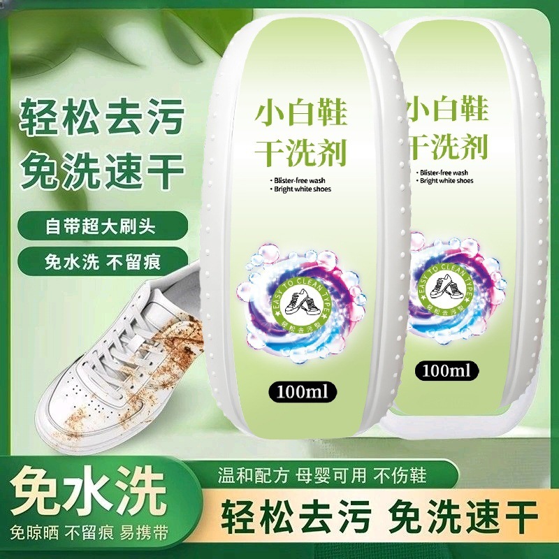白い靴の洗剤100mlの便利なセットはブラシを持っています。