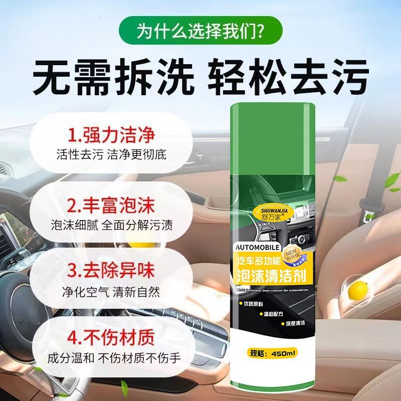 舒万家自動車多機能泡洗浄剤内装皮シート天井洗浄汚れ除去スポット代発可
