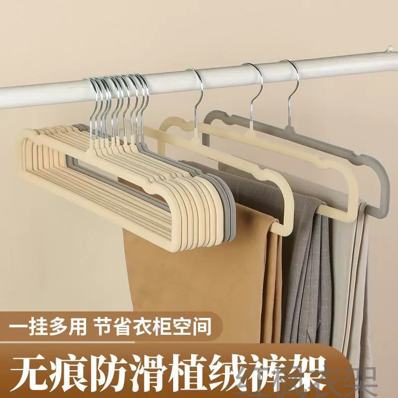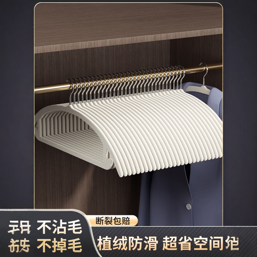 植毛ハンガー発プラスチック無痕滑り止め家庭用収納整理師服ハンガー卸売り