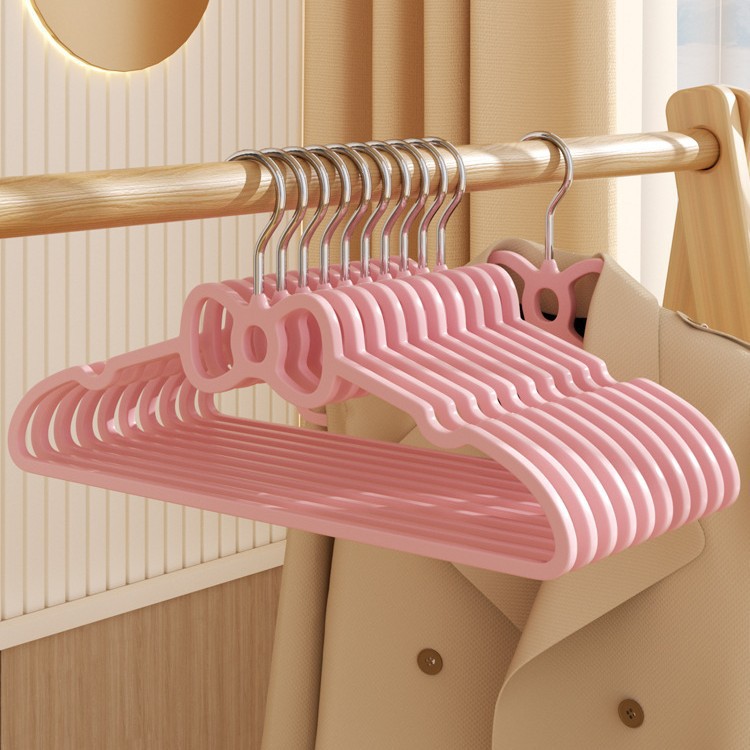 少女の心のピンクのハート型の蝶結びのプラスチックのハンガーのアイデアの学生の寮はハンガーを干してかわいい滑り止めの服を支えます。