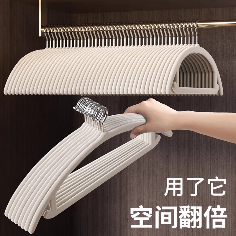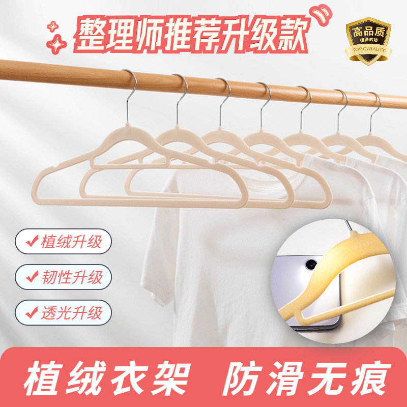 高級透光植毛ハンガー家庭用収納整理無痕ビロードハンガー洋服店プラスチック服ハンガー