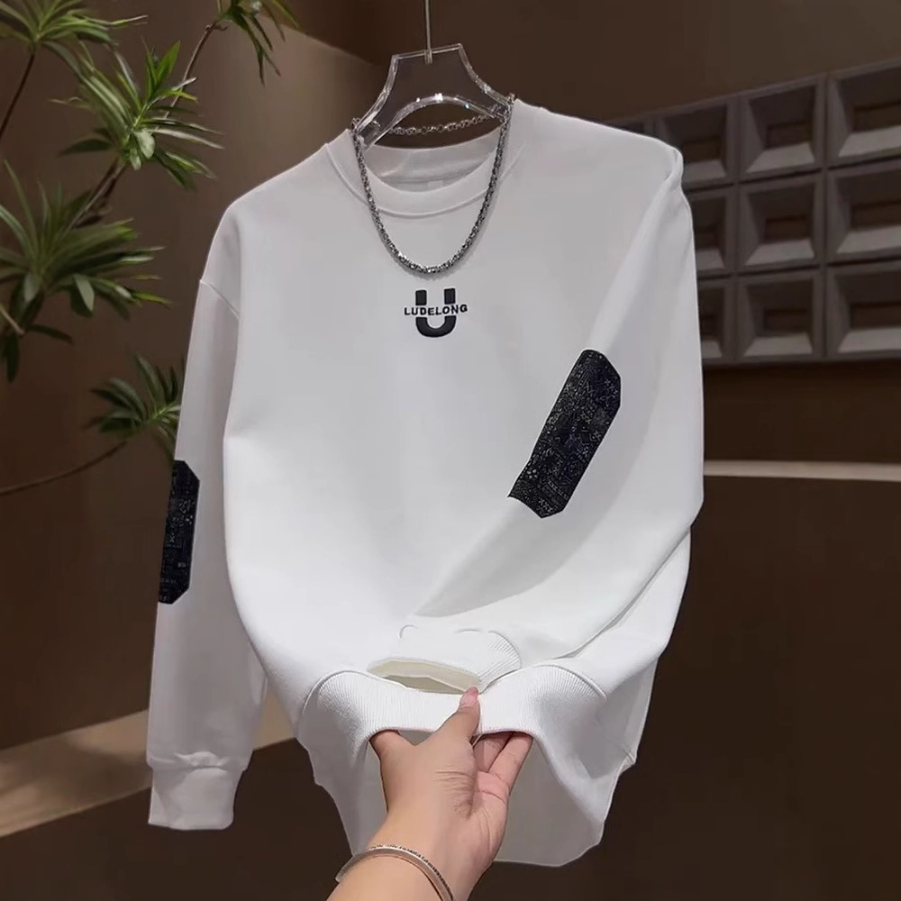 2025 春と秋の新ファッション韓国スタイルスウェットシャツメンズトレンディな多用途プルオーバーラウンドネック長袖レター刺繍トップ