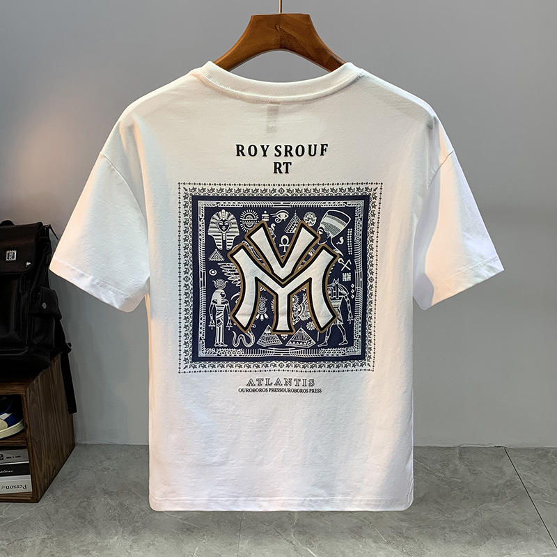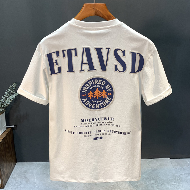 夏の新しいアメリカン半袖Tシャツメンズトレンディなレタープリントラウンドネックスリムフィット多用途ルーズ半袖Tシャツ