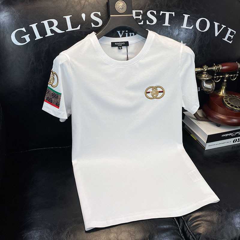 ヨーロッパファッションブランドライト高級メンズTシャツ半袖若者刺繍新作Tシャツネットセレブラウンドネックルーズ半袖