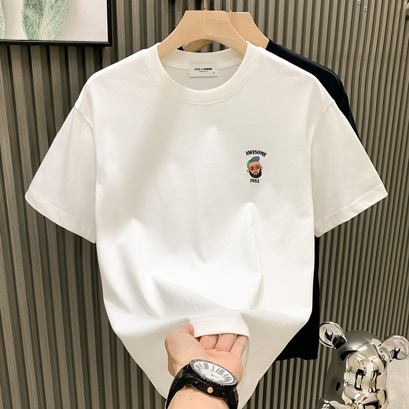 ヨーロッパステーションハイエンド刺繍半袖Tメンズ2024年夏新作シルケットコットントレンディブランドトレンドスリム半袖