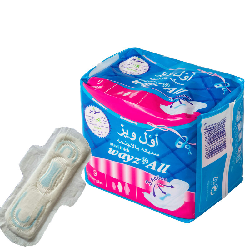 290 ミリメートル夜用生理用ナプキンプリントブルー肥厚工場卸売使い捨て女性生理用ナプキンスルタンイラク