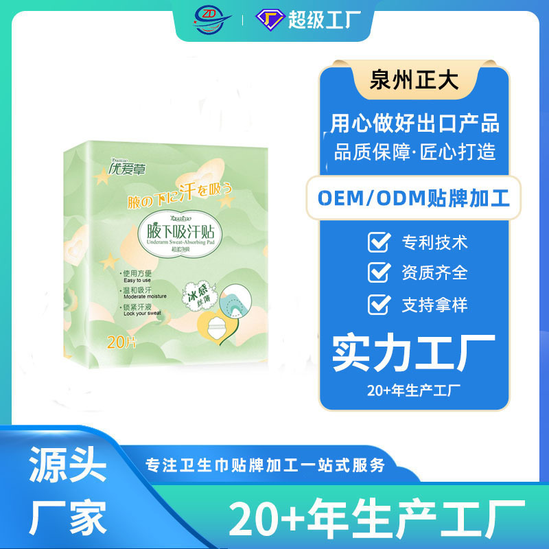 メーカー直販卸売り使い捨て汗止めシール汗除去シール通気腋窩下吸氷感ミント吸汗シール20枚入り