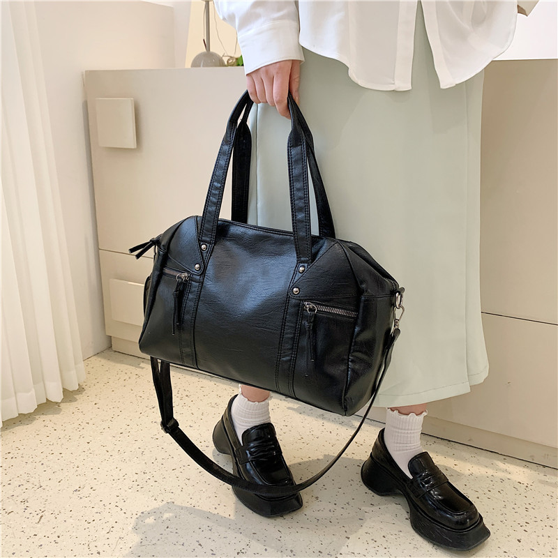 クロスボーダー大容量バッグレディース2023夏新作機関車風レトロpu皮ダブルポケットトート旅行バッグ