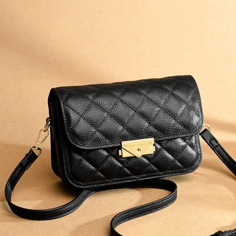 本革の小さいカバンの女性2023ファッションの小さい香風の菱格の包みの新型の女性のカバンは斜めにシングル肩の頭の層の牛革のカバンにまたがります。