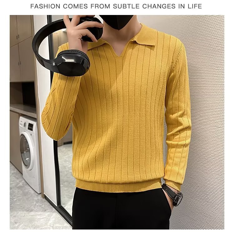 男性の半高ファスナーにカジュアルセーターを合わせた秋冬2023新型保温ニット純色シャツ