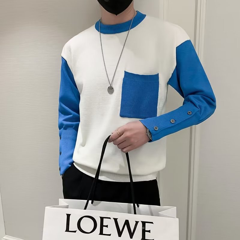 秋冬の偽の2つのセーターの男性の2023新型のカジュアルな底のニットの韓国版の潮流のごろつきのかっこいいネットの上着