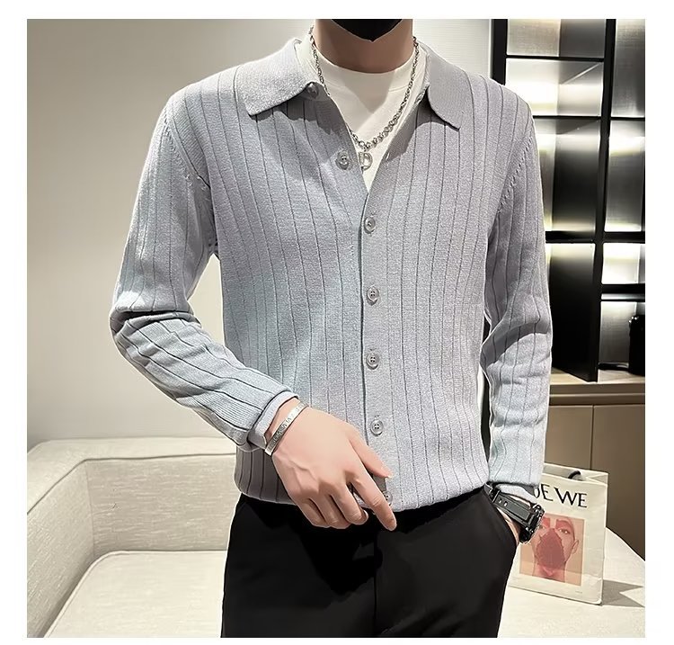 2023秋冬新作韓国版色合わせセーター男性ファッション丸首ファッション修身カーディガン男性