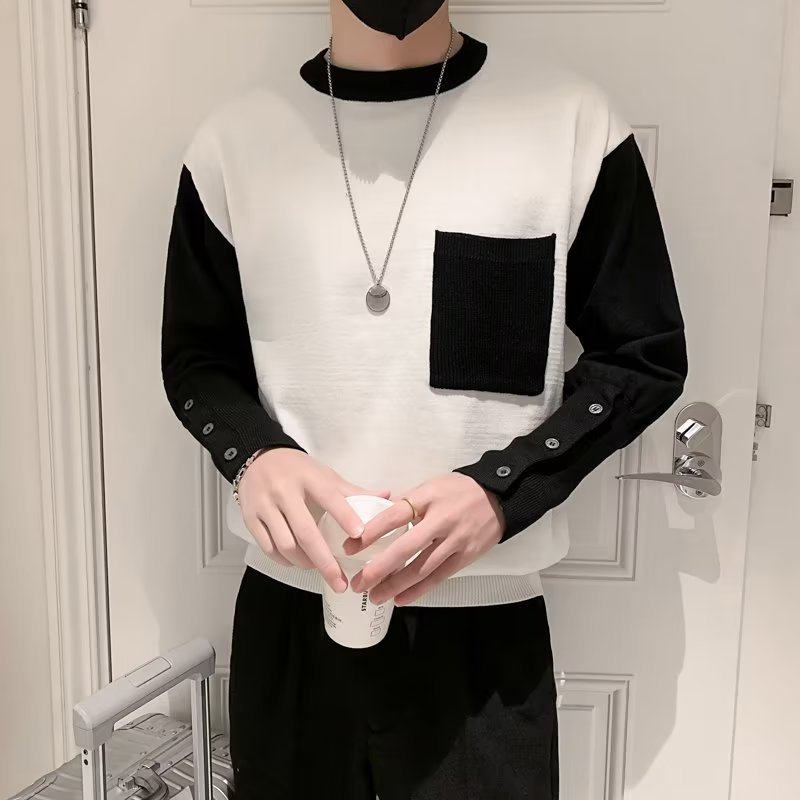 丸首セーター男秋冬保温韓国版ファッションカジュアルなニット服