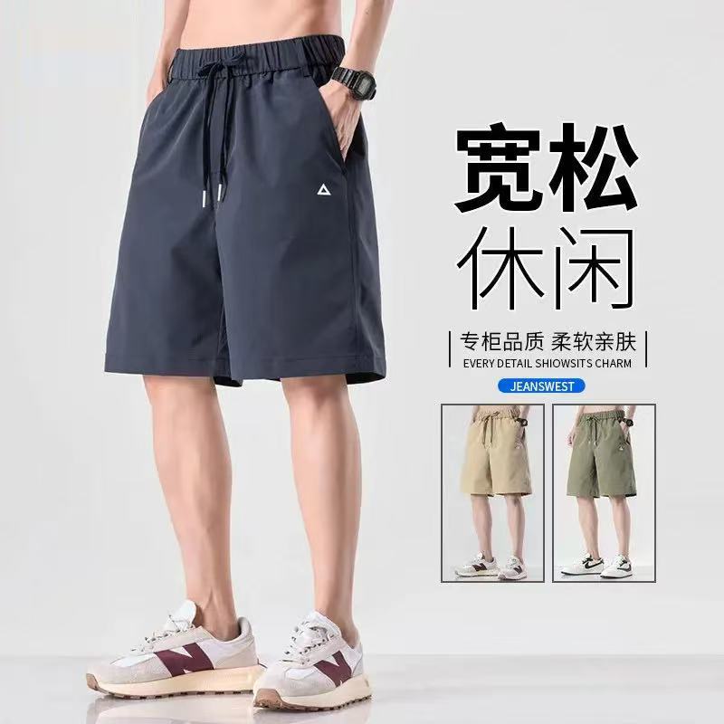 2025 新しいメンズ夏のパンツ薄いアイスシルクショーツメンズルーズストレート通気性カジュアル 5 点パンツ男性