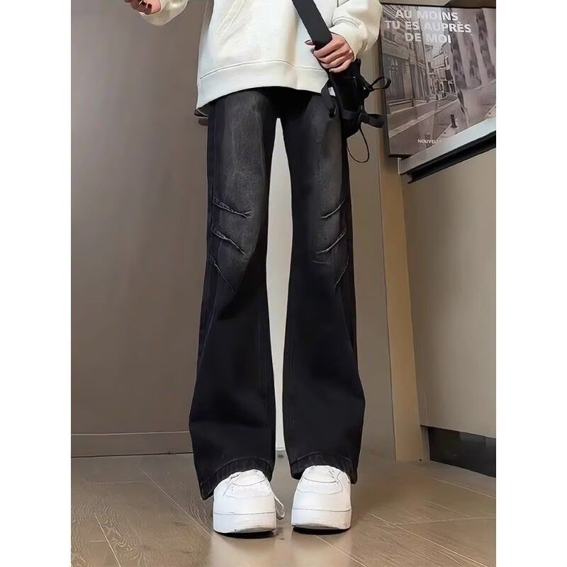 ティーンエイジャー向けのウォッシュ加工とダメージ加工を施したニッチデザインのワイドレッグパンツ2025春と秋の新しい分割デコンストラクトデザインジーンズ