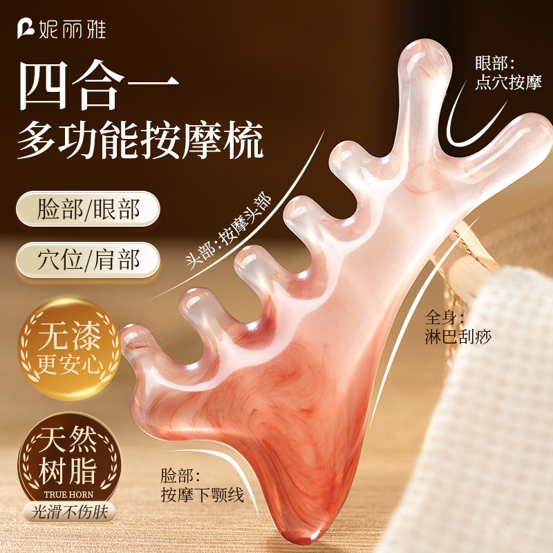 ニヤ顔掻爬頭治療経絡櫛神器四合一多機能頭皮樹脂マッサージ櫛