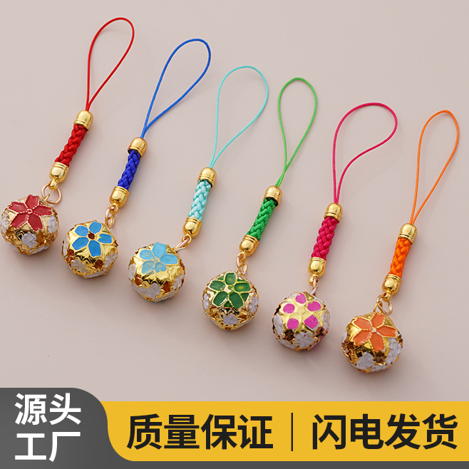 古代風の飾り物、編み込みアクセサリー、カラフルな景泰藍の鈴、中国風の吊り下げ紐、ロブスタークラスプ付き携帯電話ストラップ
