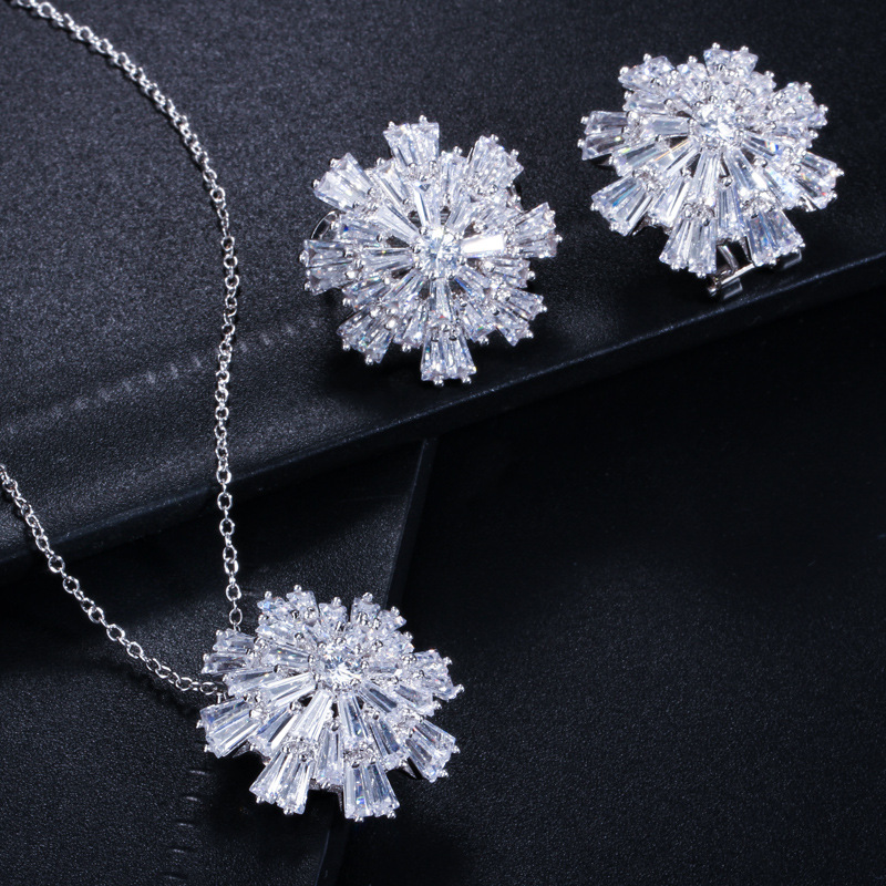 Ki0006韓国版高級超フラッシュジルコン花イヤリングネックレス2点セットファッション百掛けセット卸売り