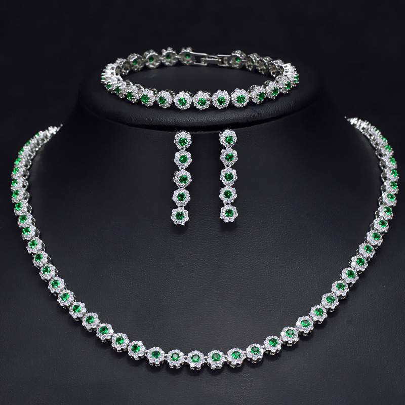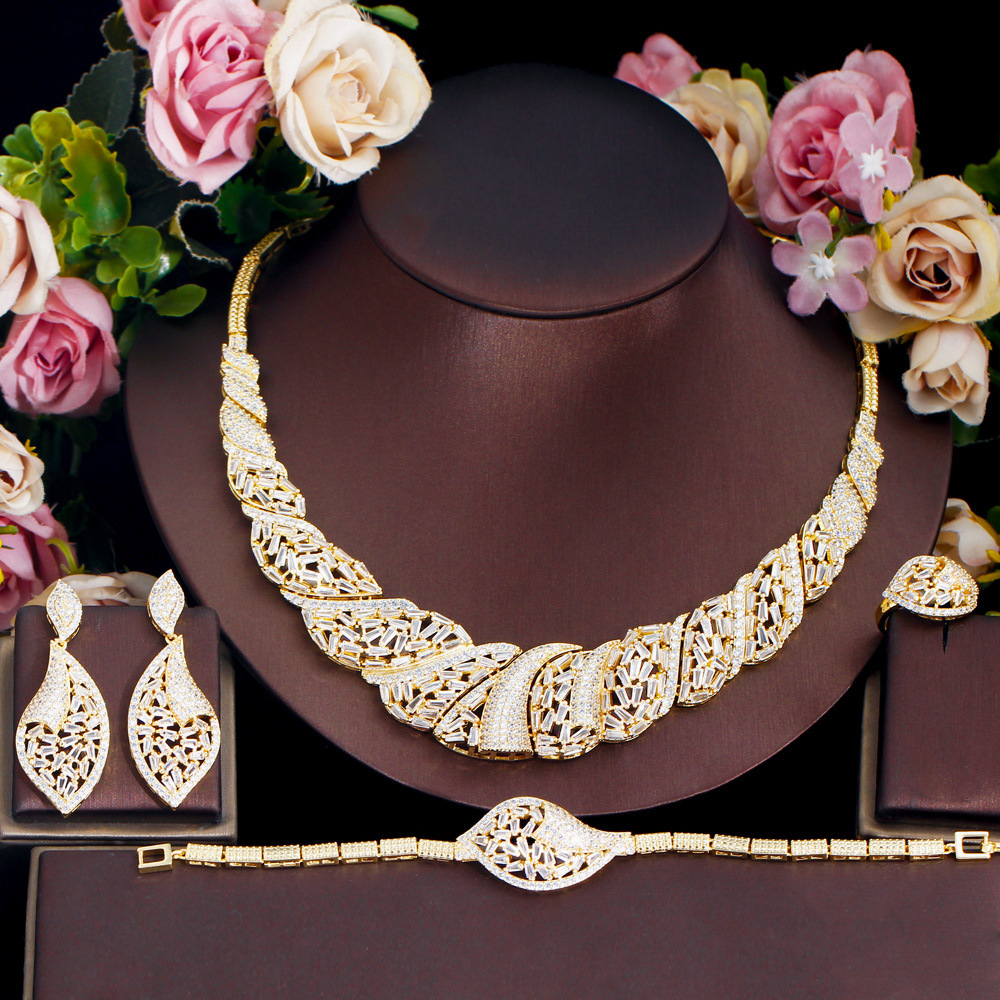 国境を越えた欧米の対外貿易はジルコンの花嫁の結婚式の宴会のチェーンの個性のネックレスのイヤリングの4つのセットをドリルします。