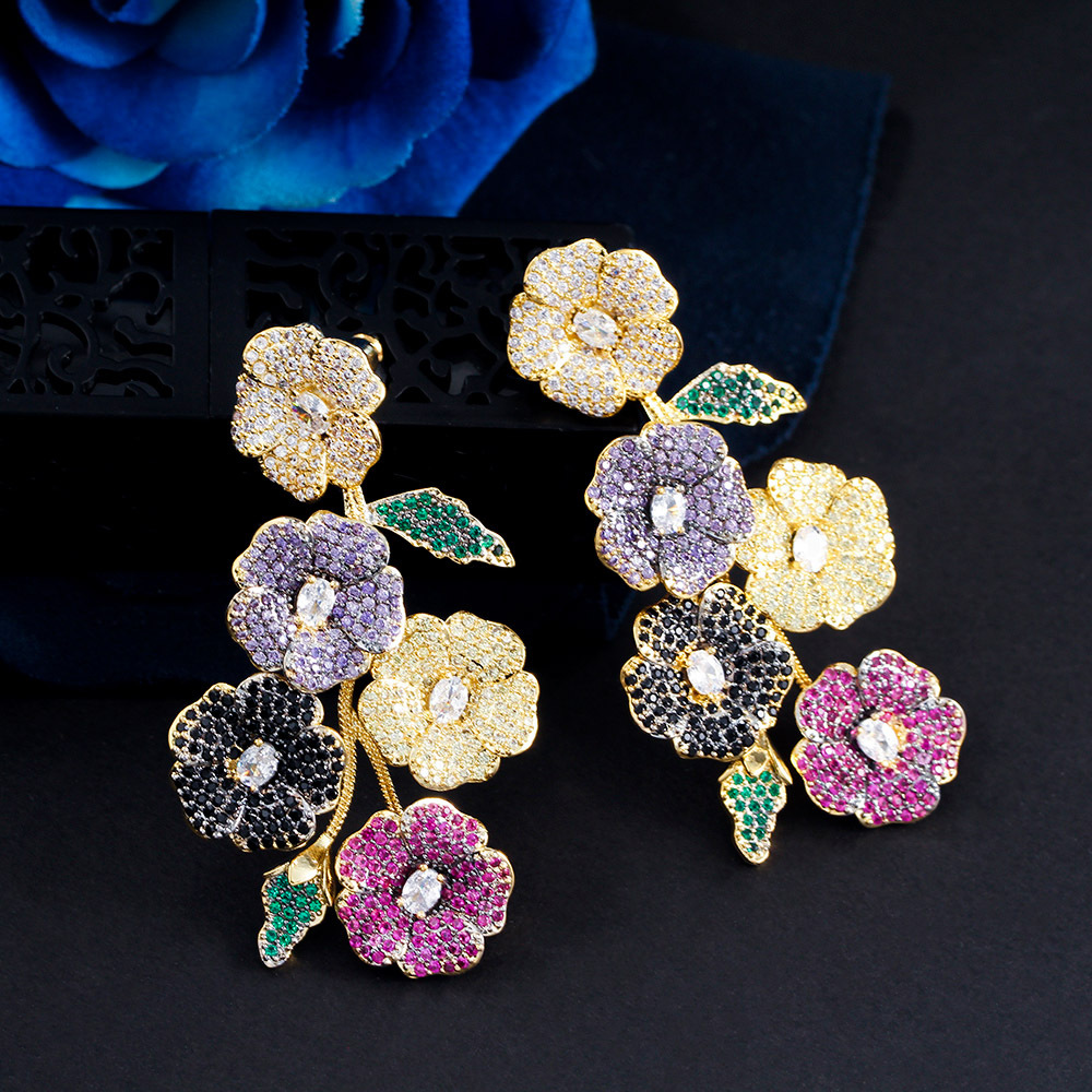 欧米の重工s925銀針気質フランスのミニチュアカラージルコン植物の花のイヤリングのファッションアクセサリーのイヤリング