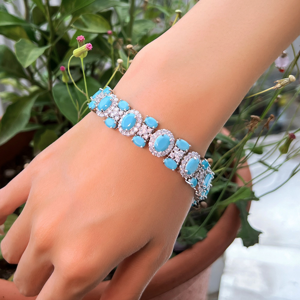 国境を越えたソースの気質に合わせて、緑松石のブレスレットのデザイン感があります。