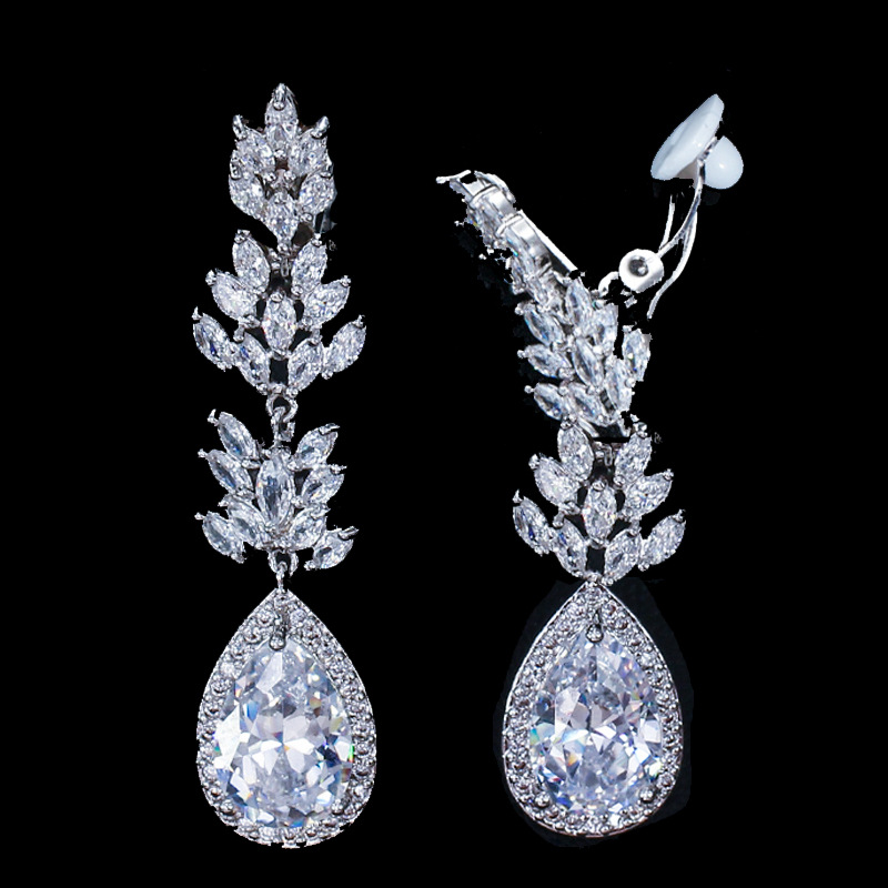 Ej0108日韓ファッションシンプルな花卉水滴耳飾りが輝いている3aジルコン耳クリップ花嫁宴会ドレスアクセサリー
