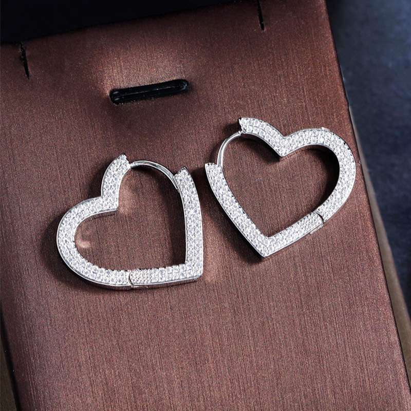 大衆がデザインした冷たい風がジルコンの愛の耳輪イヤリングの幾何学的なハート型真鍮金メッキ耳輪耳飾りを飾っている