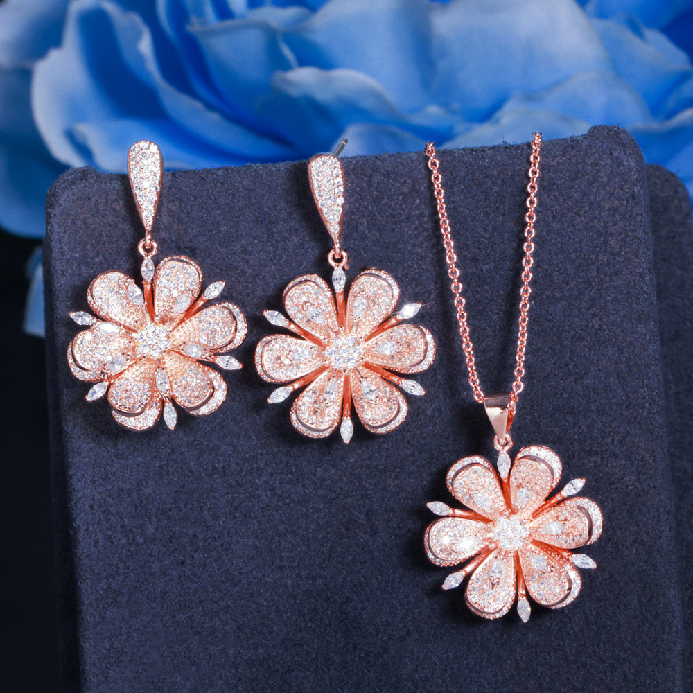 Ki0085欧米のシンプルなダイヤモンドのバラの花のイヤリングのペンダントの小さいセットの超フラッシュのジルコンの女性の装飾品の卸売り