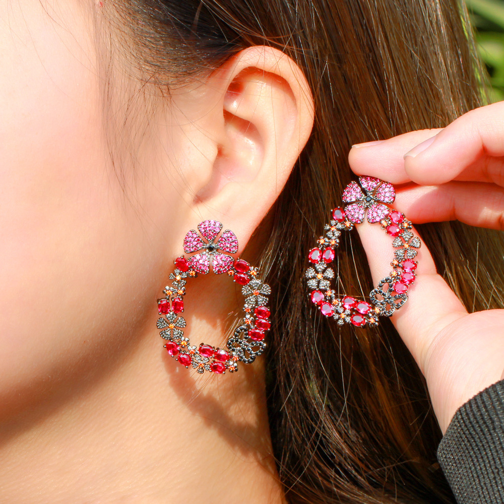 2022新型ファッション花銃黒色ファッションイヤリングカラージルコン復古透かし彫りイヤリング耳飾り