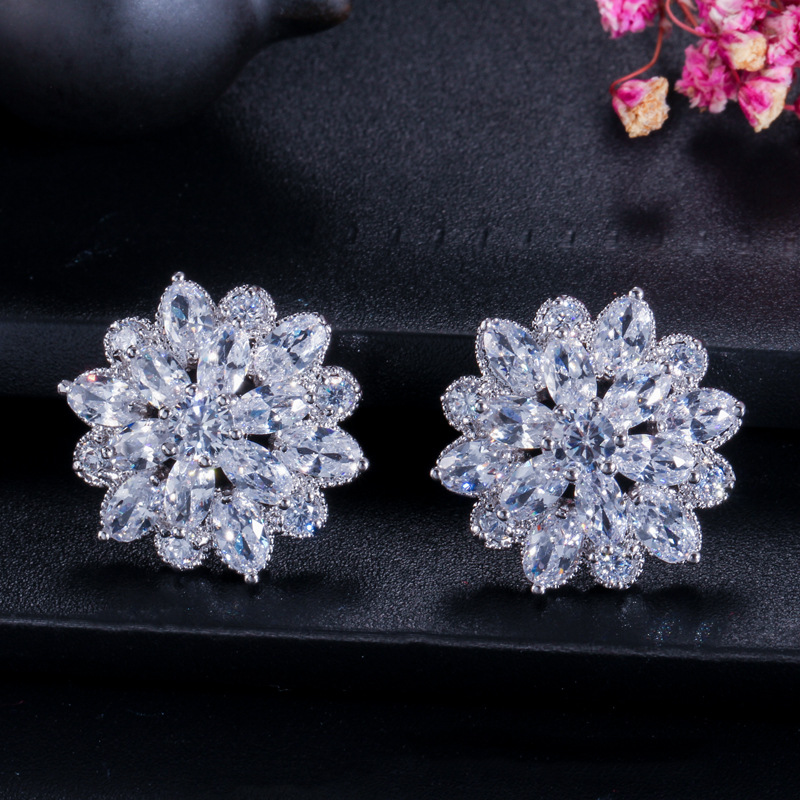 利勝韓国版ファッションアクセサリー氷凌花ジルコンイヤリング日韓流行耳飾り輸入ジルコン雪花ピアス