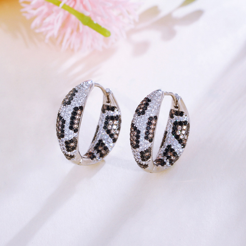 欧米のinsの個性は軽くて豪華な蛇の紋様のヒョウの紋様が小さくジルコンの耳のボタンの2色の電気めっきの気質のいっぱいなドリルのイヤリングの耳飾りを入れます。