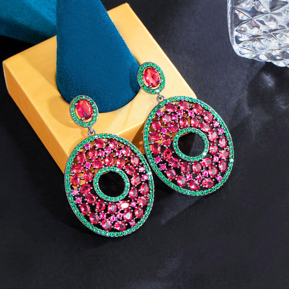 925シルバーニードル中古重工名族風ラウンドラウンド誇張イヤリング幾何学カラー宝石高級感耳飾品