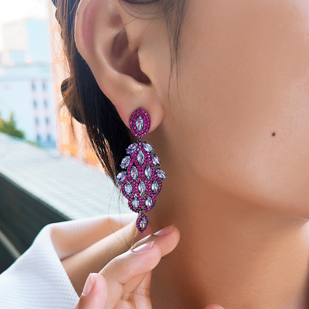 日韓の軽くて豪華な長い花の水滴のジルコンのイヤリングは超きらきらしています。