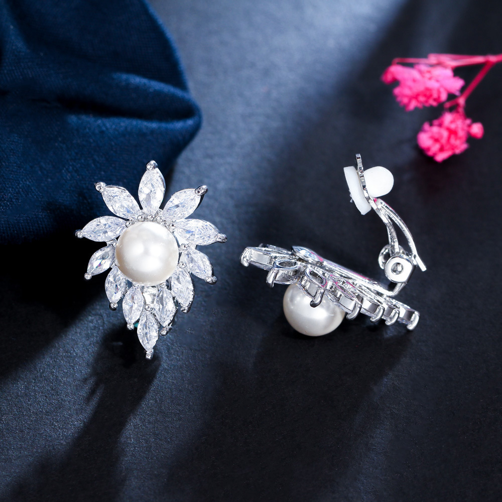 卸売り韓国韓国韓国版ファッション流行真珠耳クリップ真鍮メッキ白金馬眼ジルコン耳アクセサリー卸売り