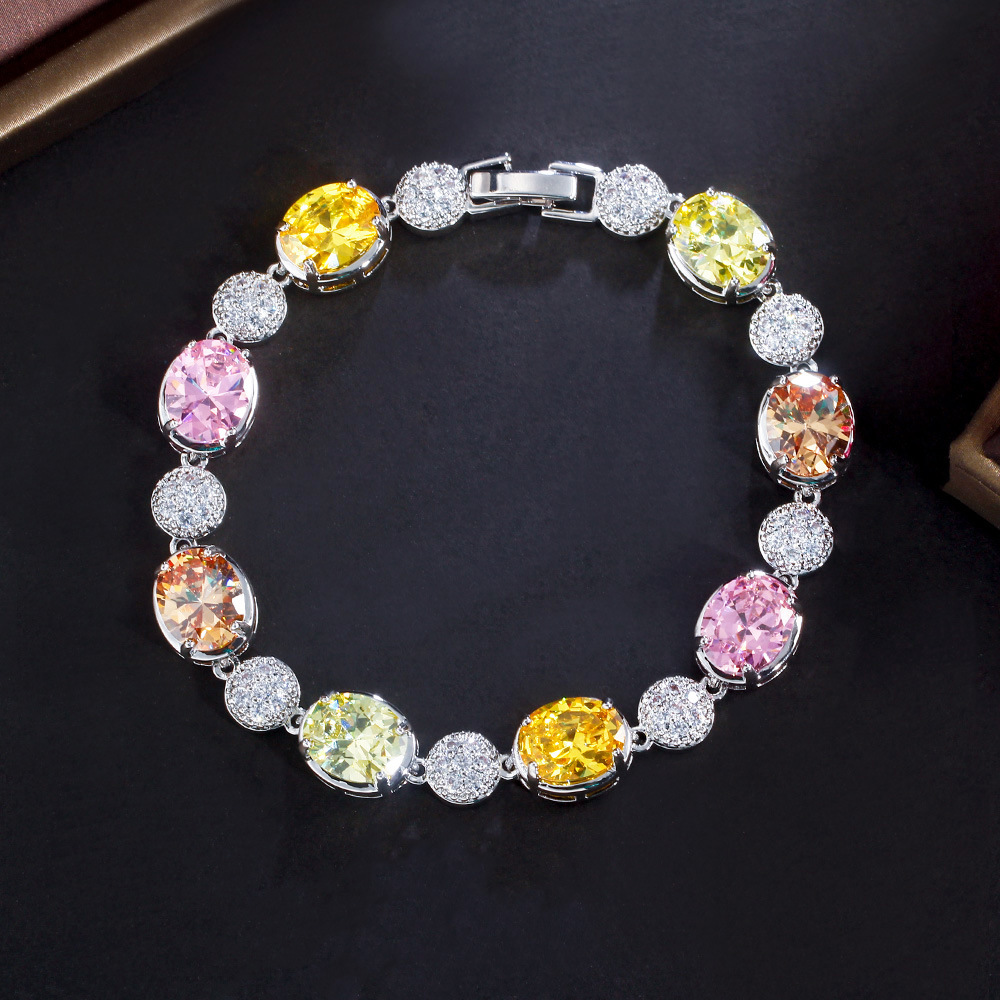 多色は欧米の越境銅を選んでジルコンの手を入れてアイデアの花のブレスレットを飾ります。