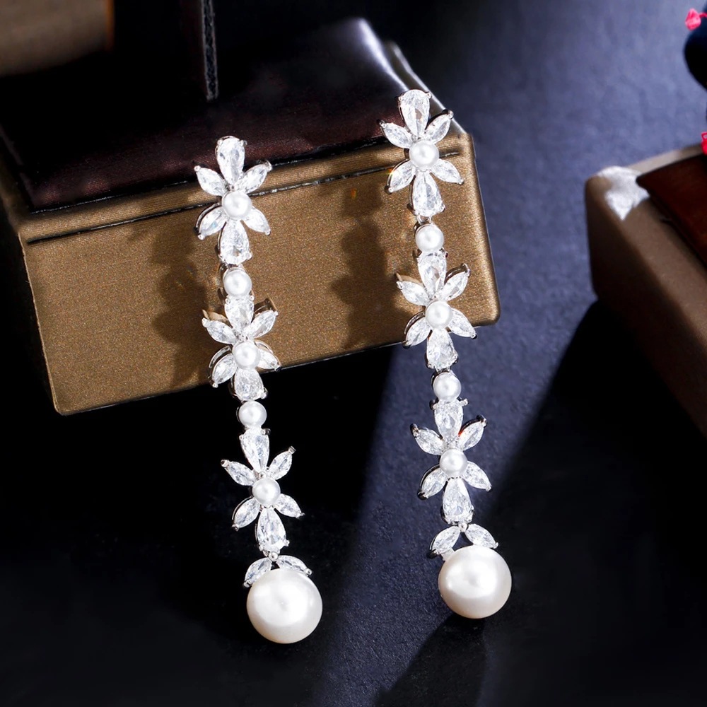 韓国式の軽豪華なファッションの長いタイプの真珠のイヤリングの女性の気質の甘いジルコンのイヤリングの百合の耳飾りのメーカーの卸売り