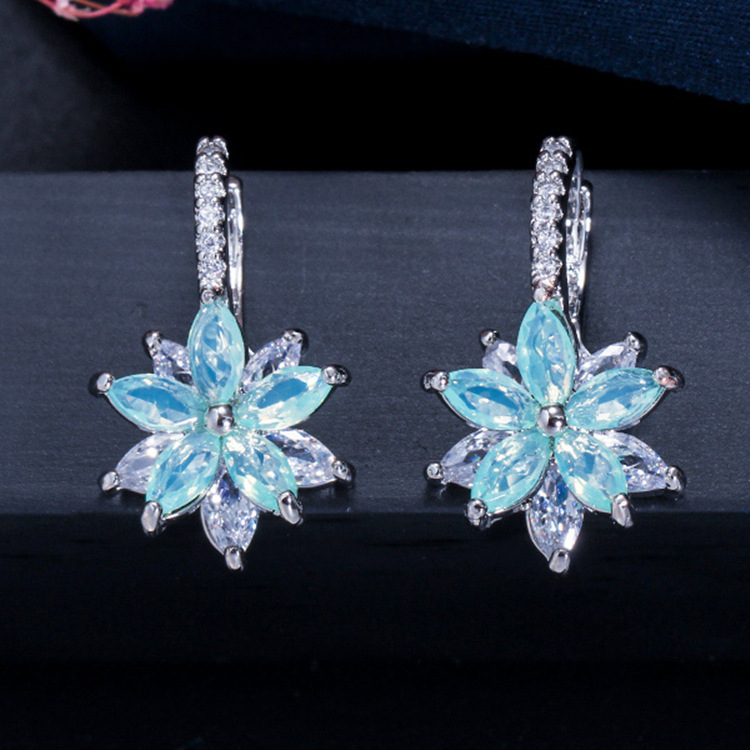 E0254新型の韓国版はシンプルで、小清新な花の耳に輝く馬眼ジルコンのイヤリングは多色で選択できます。