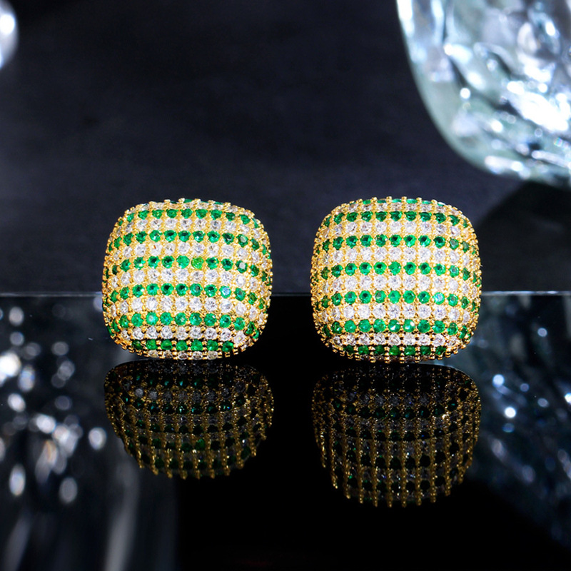 S925銀針フランスレトロ高級感幾何学耳飾り優雅なマイクロジルコン盤格イヤリングピアス卸売り