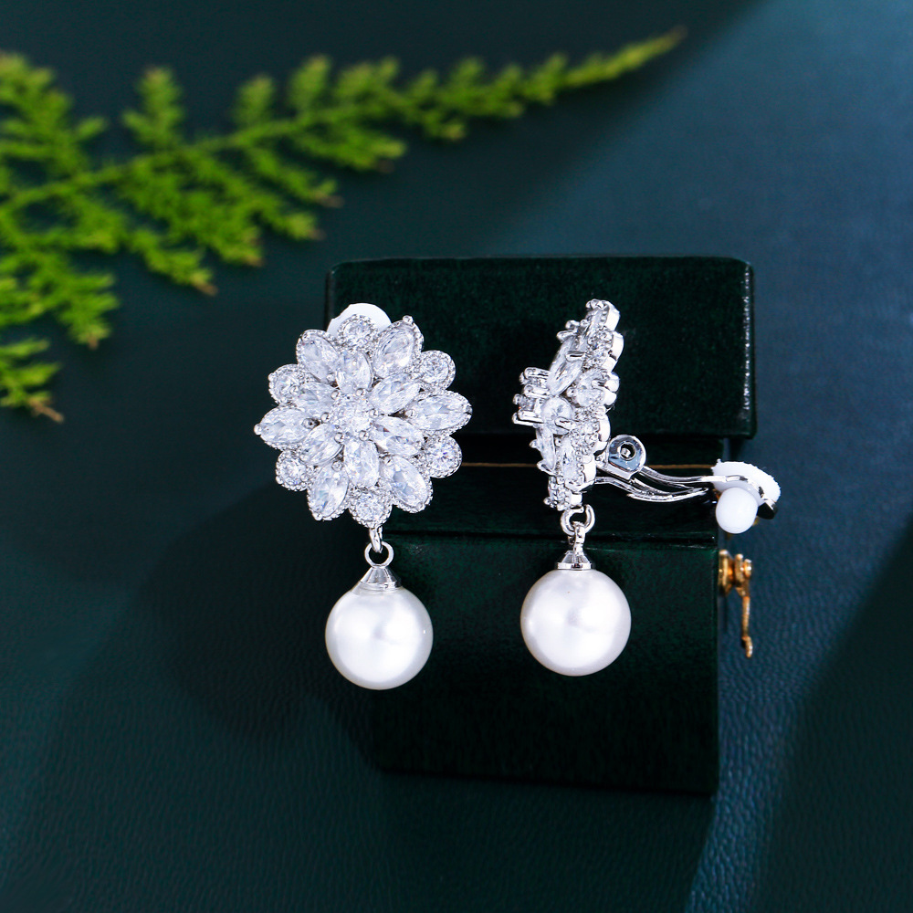 Ej0104メーカー直販韓国版真珠花卉キラキラジルコン耳クリップファッション小清新女性耳飾り