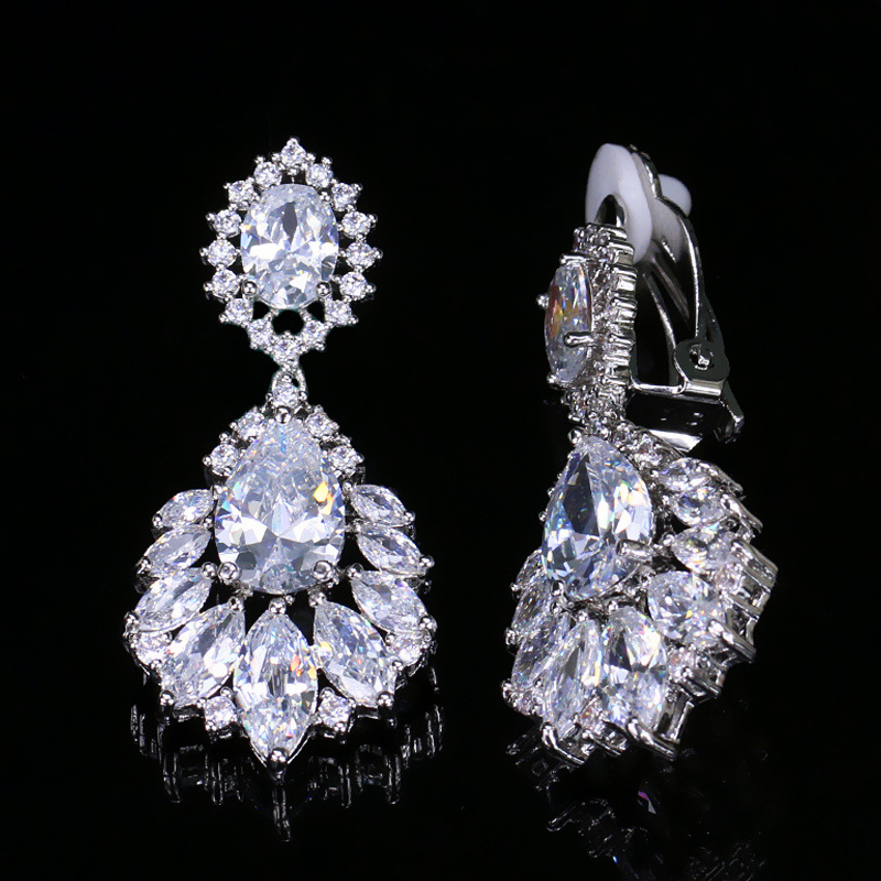 ファッション水滴18kプラチナジルコン耳クリップ欧米の人気イヤリング