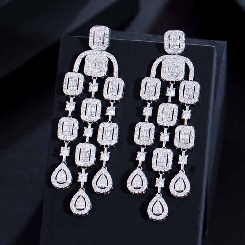 欧米のファッションの気質の流蘇のイヤリングの宴会の長いタイプの優雅な銅のマイクロはジルコンのイヤリングの耳飾りの服装の装飾を入れます。