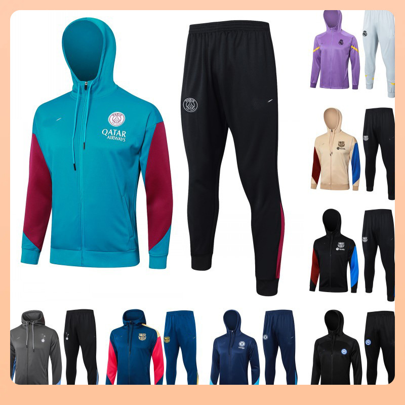 メンズ秋冬保温パリ国米バルササッカー服皇馬成人フード付きジャケット長プルオーバーサッカートレーニング
