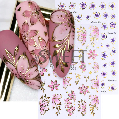 国境を越えた新しい花卉ネイルシールins風春箔押し縁桜花薔薇背ゴム爪デカール