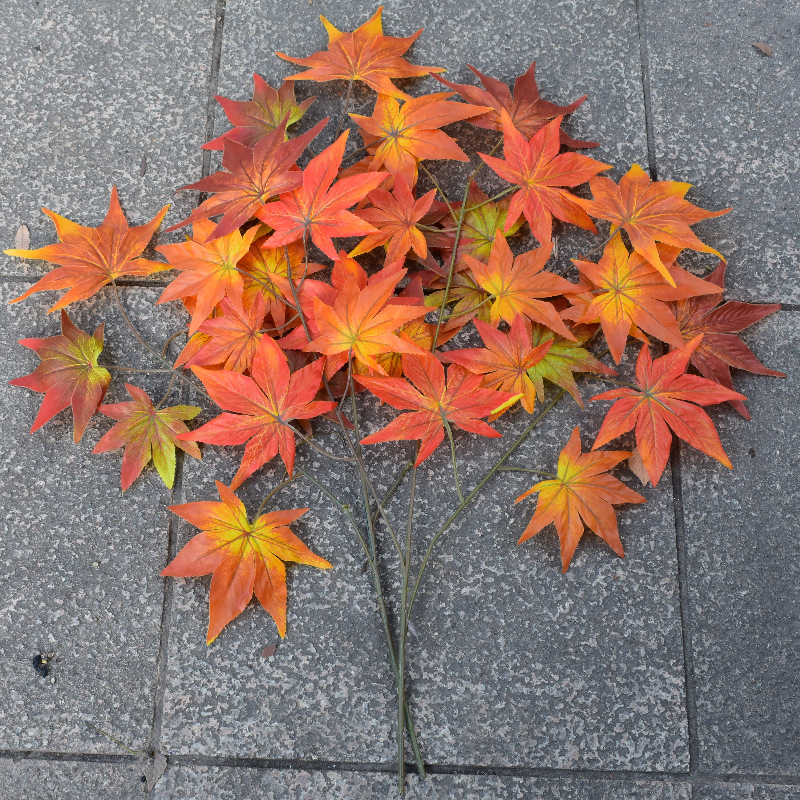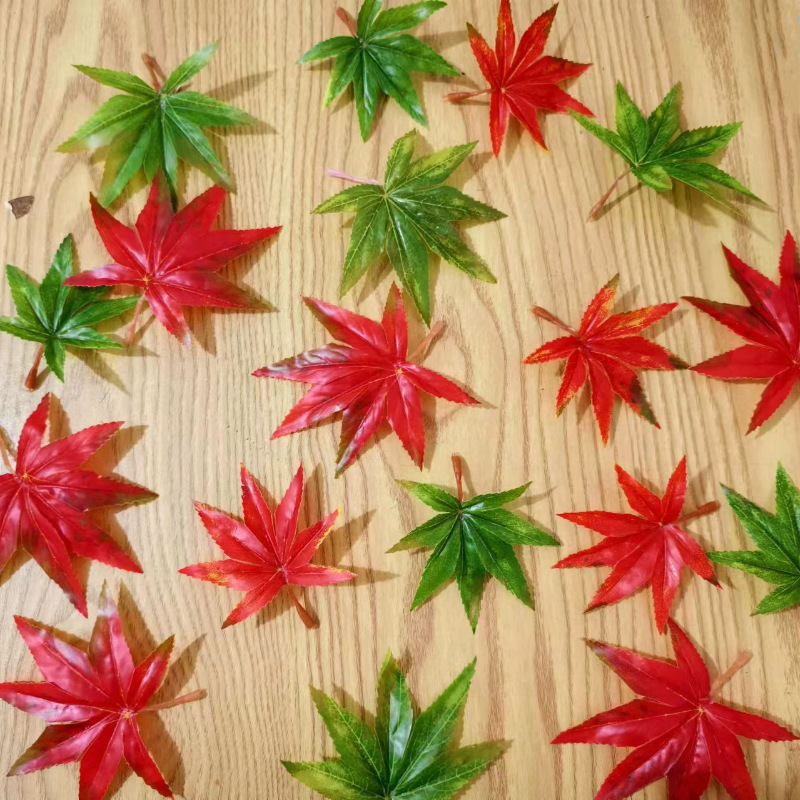 モノリシックシミュレーションカエデの葉の赤い緑色のプラスチックの偽のカエデの葉の枯れた枝DIY装飾の偽の葉の撮影は落葉を撮影します。