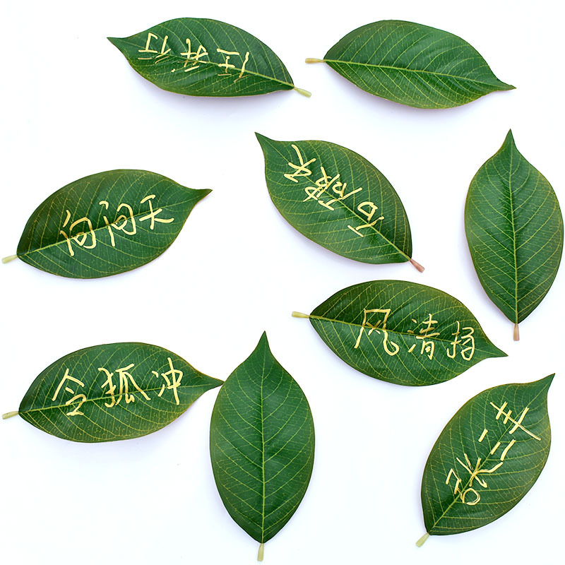 字を書いて署名に署名して偽の葉のモノリシックのプラスチックの小さい緑の葉の結婚式の活動をシミュレーションして署名の偽の緑の葉を画策します。