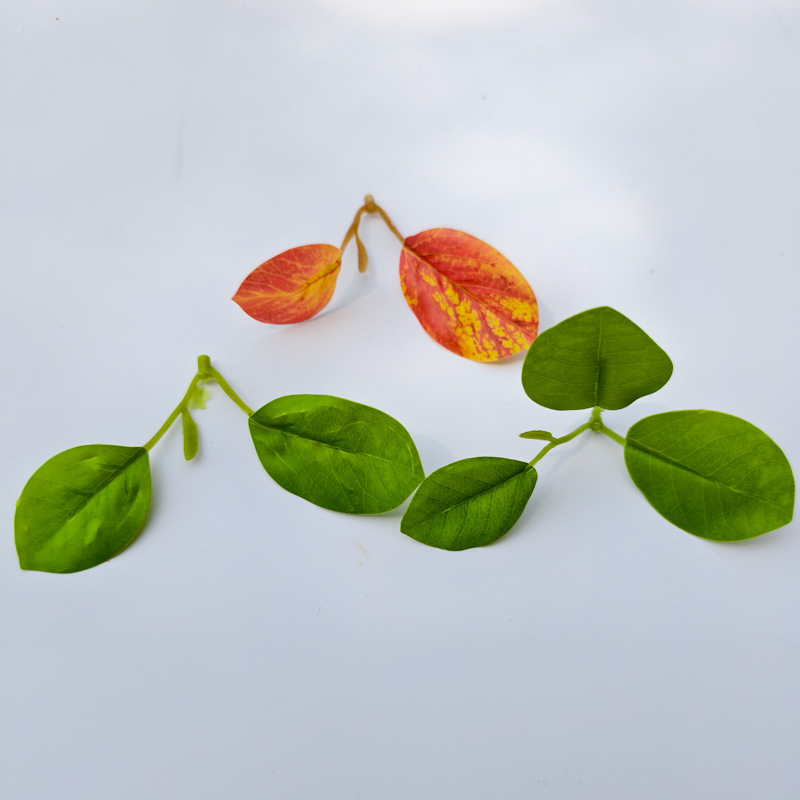 単一の模擬小さな葉赤緑プラスチック偽葉枯れ枝 DIY 装飾偽木の葉小さな緑の葉