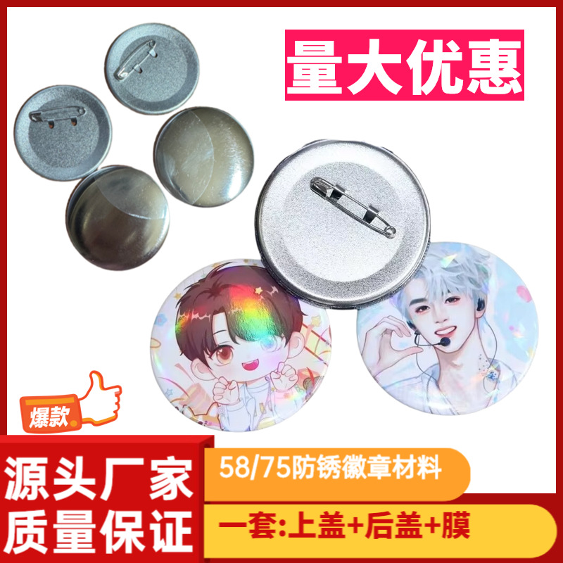 75mmブリキバッジ消耗品日谷底フロスト材料バーを厚くして高回ピンdiyブローチ