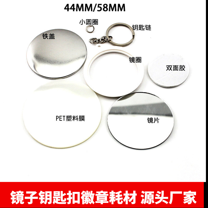 58/75mmブリキ胸章小鏡材料ミニ携帯DIY化粧鏡金属輪鏡消耗品