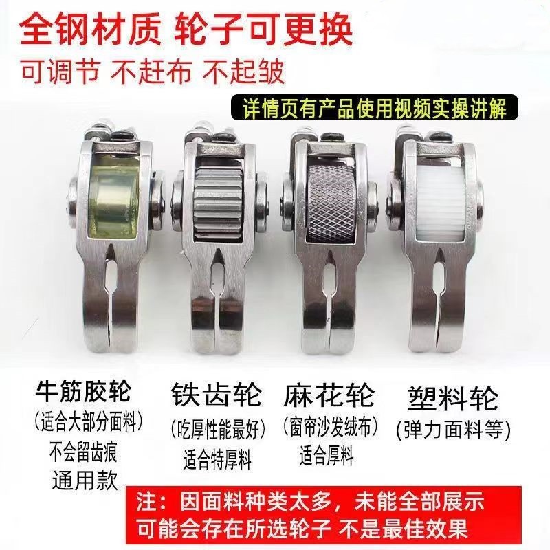全鋼平車厚材高低ローラー押えカーテン綿衣皮革ミシン止め口圧明線ブロック押え足